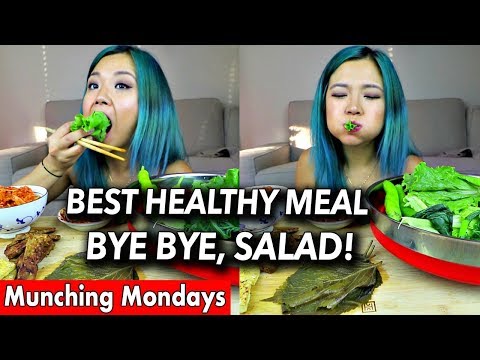 KOREAN WRAPS MUKBANG (lettuce, collard greens, etc...) // Mu